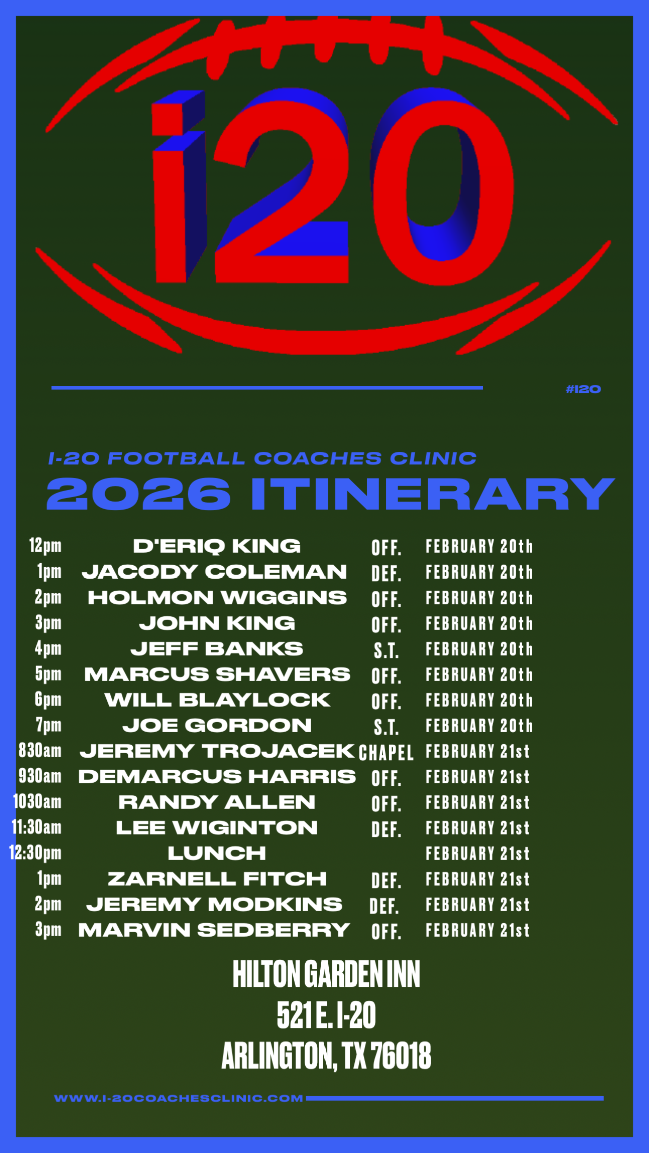 The I-20 Coaches Clinic Group Block is ready for bookings. Book your rooms using the link below…